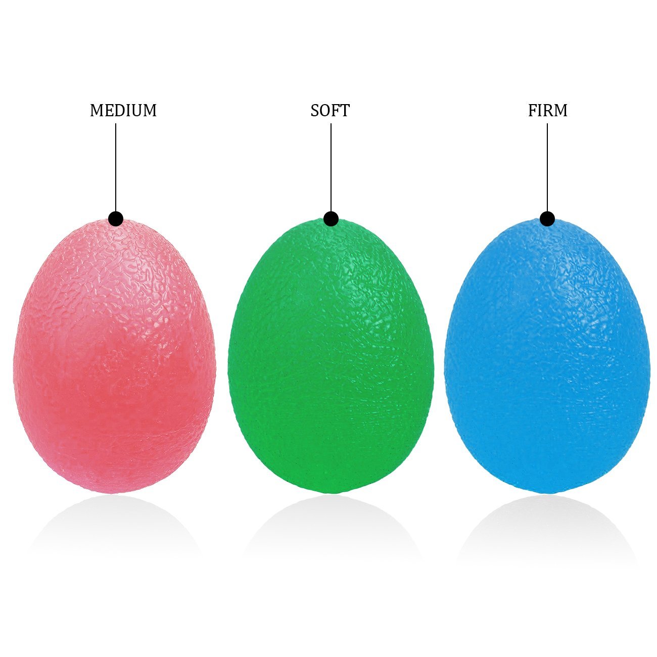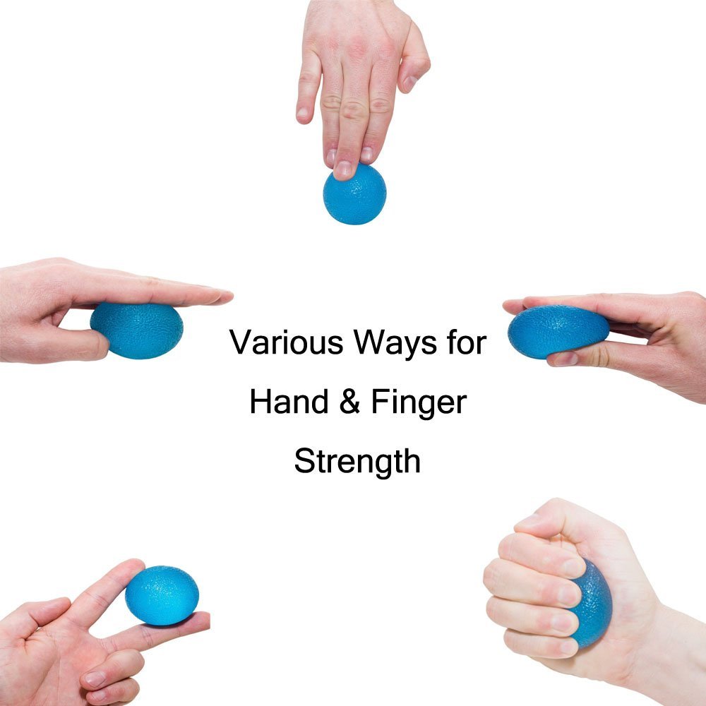 If you are trying to build strength in your forearms, wrists or fingers after injury, these hand therapy grippers can also be used as massagers especially for arthritis, carpal tunnel, stroke rehab, tennis or golfers’ elbow. Egg shaped to fit in your hands. Made of silicone gel with an ergonomic design and unique textured surface, easy to clean, can be repeatedly compressed without losing its shape. Perfect for progressive training. Improves strength, prevents stiffness and relieves joint pain.