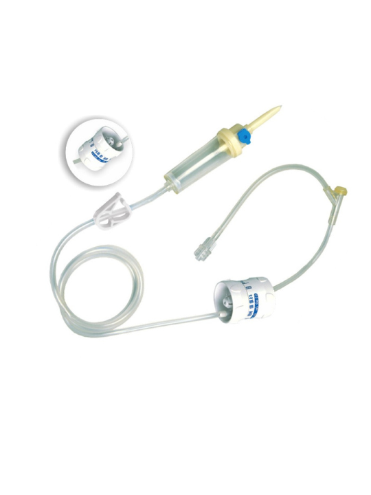 Infusion Set With Flow regulator and micro drip chamber