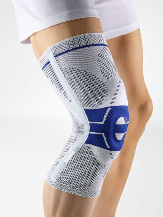 Knee cap with patellar ring supports protect, secure and stabilise the kneecap during each and every movement. The integrated ring-shaped pad holds the kneecap securely in a natural, central position and prevents any drifting, while a second, wedge-shaped pad encourages relaxation of tight muscles in the outer thigh.