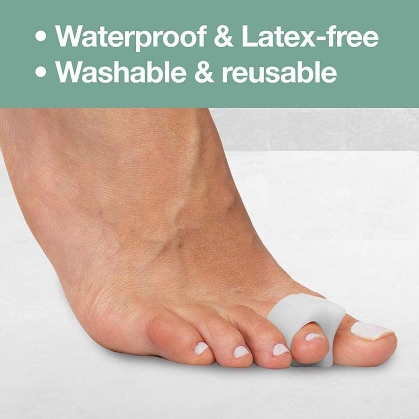 Soft, flexible gel band holds toe spacers comfortably in place with a secure, nonslip fit for most toe sizes.