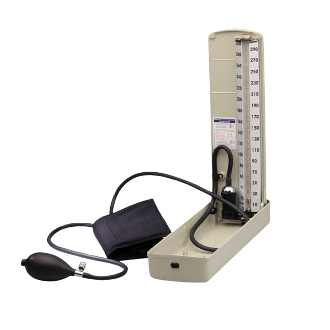 Mercurial desk model sphygmomanometer for professional blood pressure measurement in clinical environments. Designed for stable placement and institutional procurement.