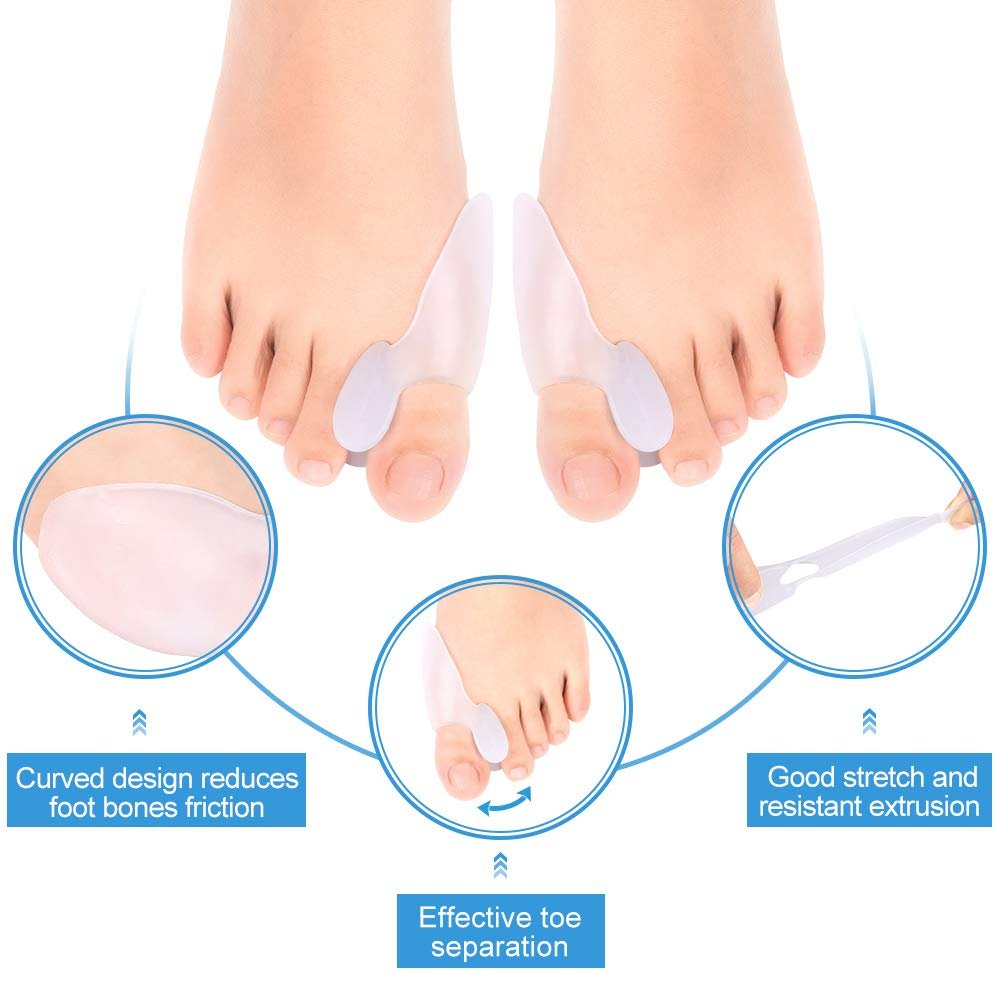 Split toe and protect big bones. Separate the toes with the high elasticity of silica gel, reduce the squeeze between the big toe and the two toes. Soft gel pad protects the foot bone from friction with shoes.