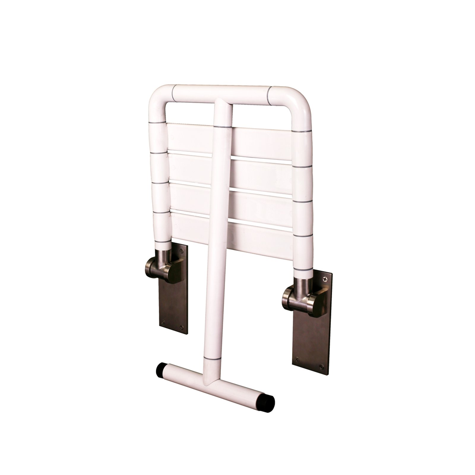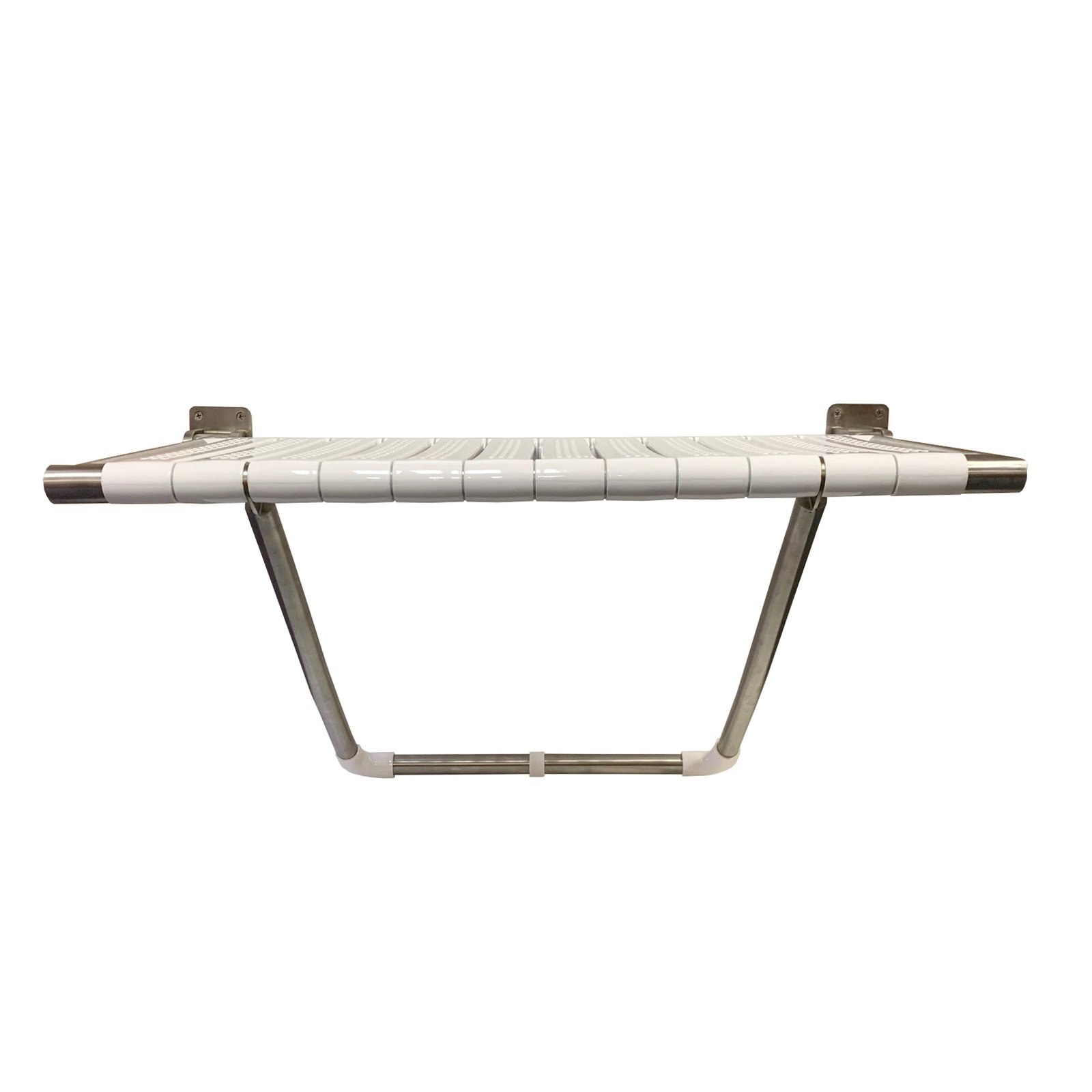 Wall mounted fold up shower seat is aluminium coated with antibacterial nylon plastic. Folds away when not in use and provides users with a comfortable and safe product to assist when showering. Stainless steel plates are used to mount the seat to the wall. Available in two sizes.